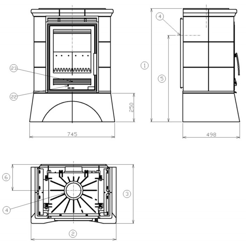 Verwendbare Brennstoff: Holz, Holzbriketts / Braunkohlbriketts