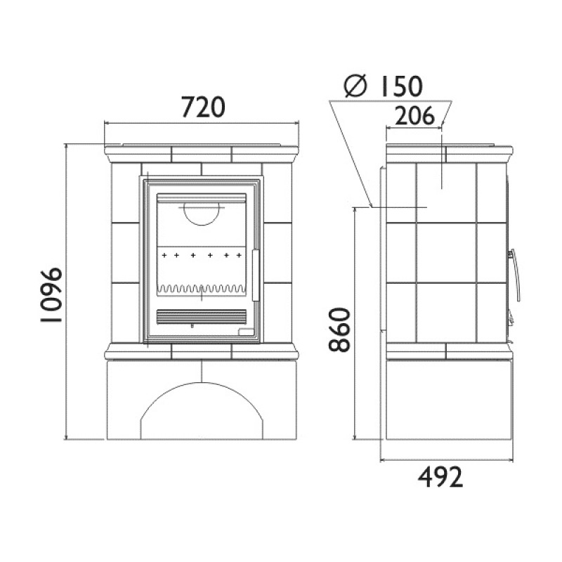 Verwendbare Brennstoff: Holz, Holzbriketts, Braunkohlbriketts