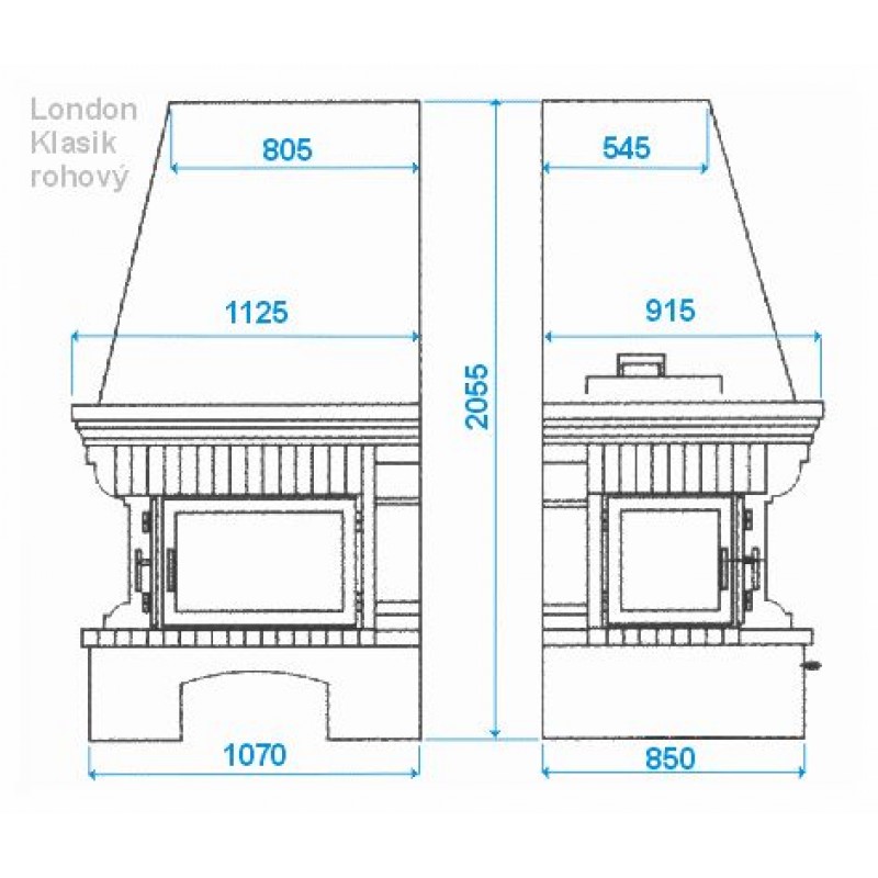- Pro odeslání do Česka navštivte ABX London Klasik TV výměník 7,2kW, Krb rohový, sokl bílý, římsa dřevo, pravý