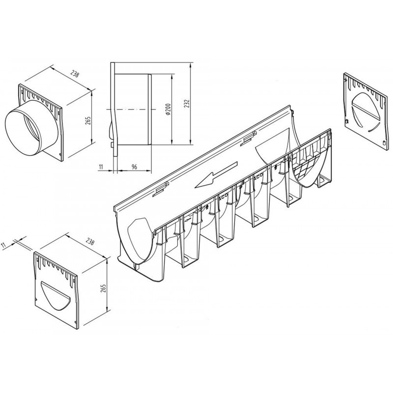 - Pro odeslání do Česka navštivte ACO XtraDrain X200 čelní stěna s odtokem DN/OD 200 11099
