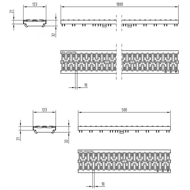 - Pro odeslání do Česka navštivte ACO Drainlock V/X100 - C250, rošt můstkový 0,5 m, nerez 12645