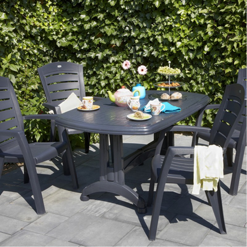 Der Gartentisch Portland sorgt für Bequemlichkeit in Ihrem Garten. Getränke und Essen können ganz einfach abgestellt werden.• aus hochwertigem Vollkunststoff