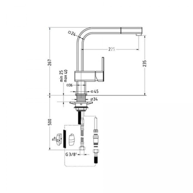 ALVEUS AM 60 - P Küchenarmatur Algranit, anthrazit 1070178Abmessungen: 225 x 267 mm