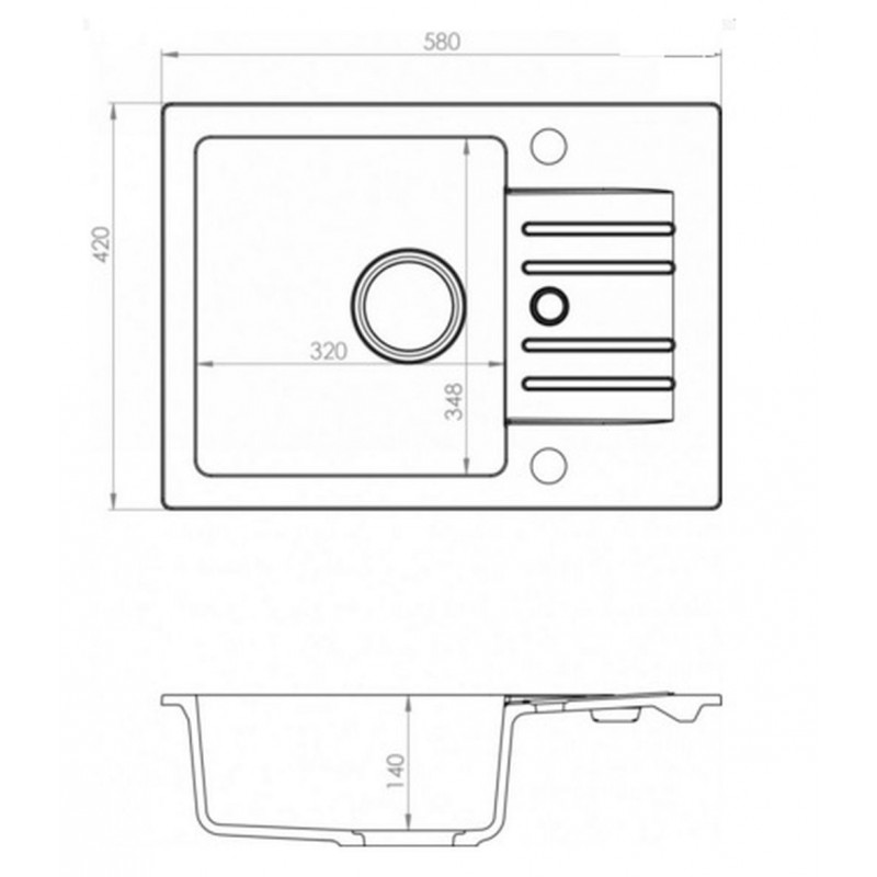 - Die Spüle wird mit 2 Löchern geliefert (für Wasserhahn- und Siebventilsteuerung).