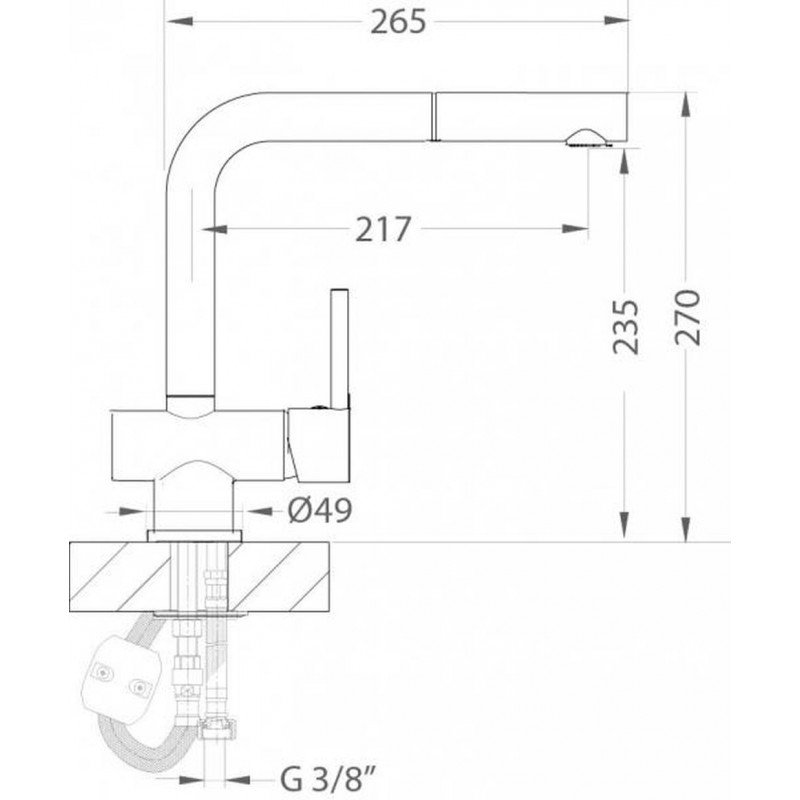- Gesamthöhe des Wasserhahns: 270 mm