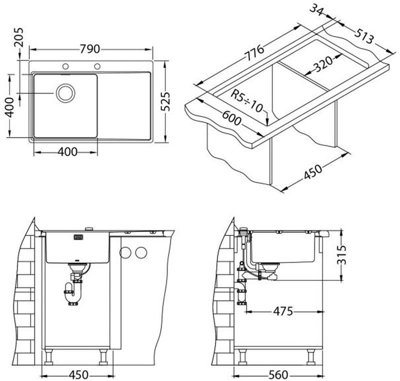 Flachrand- Spülen (S) werden so in die Küchenarbeitsplatte eingebaut, dass eine einheitliche Arbeitsfläche geschaffen wird. Dünne, fast unbemerkbare Ränder der Spülen ermöglichen schnelle und einfache Reinigung. Der Einbau ist außergewöhnlich einfach auch in gewöhnlichen Arbeitsplatten möglich.