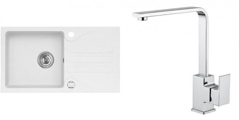 ALVEUS Set GALAPAGOS 30 Granitspüle 770x430 mm + Küchenarmatur RENO, weiß