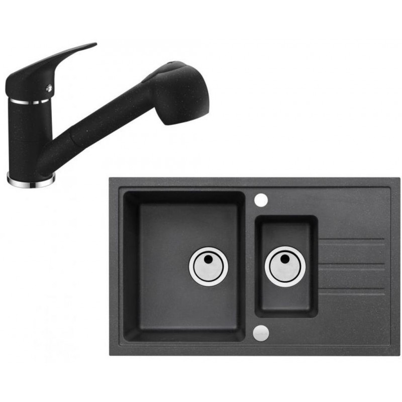 ALVEUS Set INTERMEZZO 70 Granitspüle 780x480 mm + Küchenarmatur AM 20, schwarz