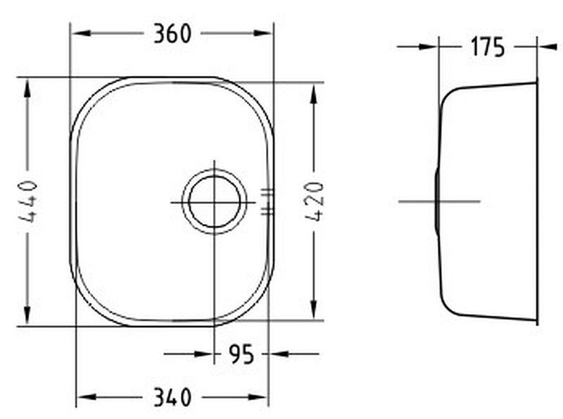 - Spülengröße: 340 x 420 mm