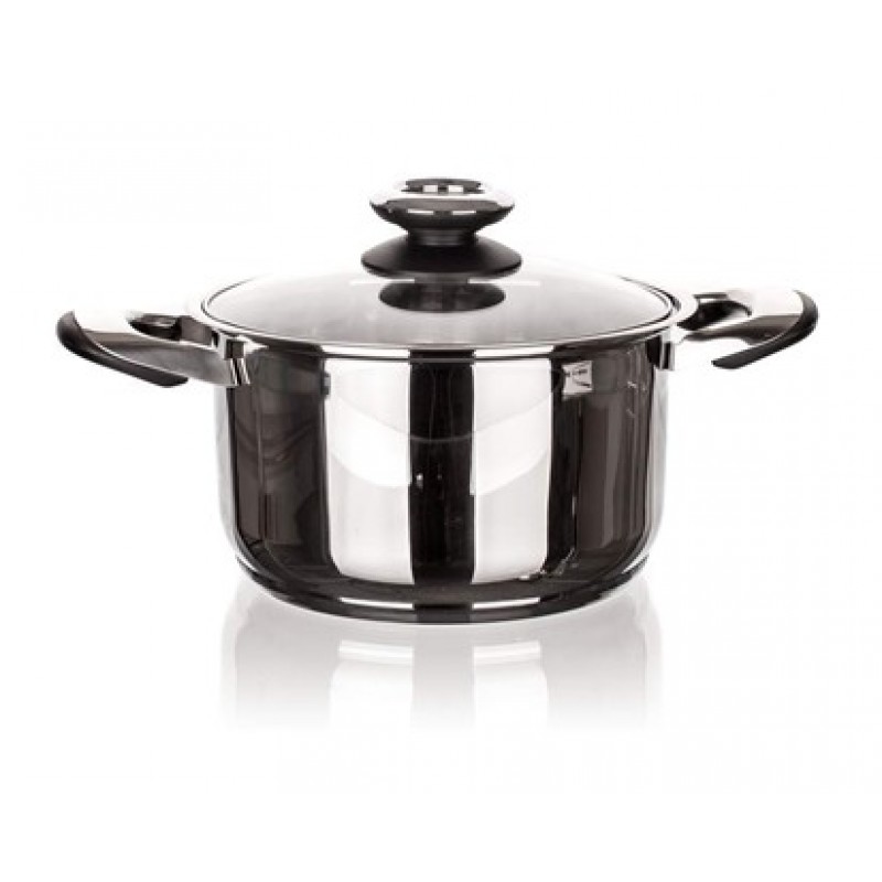 BANQUET Massima Topf mit Deckel 6,5 L 48HF10H24Topf mit Deckel 6,5 L . Durchmesser 24 cm, Höhe 14,5 cm. Innerhalb und außerhalb glänzend, Griffe und Deckelknopf – eine Kombination von Kunststoff + Edelstahl.