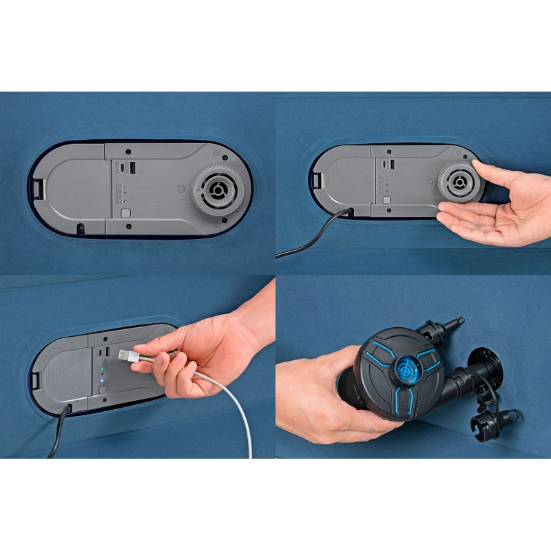 Die patentierte AlwayzAire Dualpumpe gewährleistet, dass Ihr Bett auch am Morgen noch aufgeblasen ist. Mithilfe interner Sensoren wird der Druckverlust während des Schlafs leise ausgeglichen, sodass Sie niemals auf dem Boden aufwachen. Das gesamte Bett ist innerhalb von vier Minuten vollständig aufgepumpt und mit dem eingebauten USB-Anschluss können Sie Ihre Geräte schnell und praktisch aufladen.
