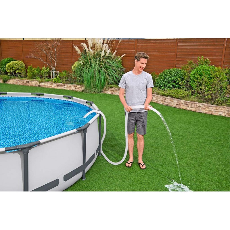 Diese chlorfeste Tauchpumpe von Bestway® ermöglicht ein schnelles sowie bequemes Abpumpen des Poolwassers. Die aus robustem, korrosionsbeständigem Material gefertigte Pumpe wird zusammen mit einem extra langen 5 m Schlauch mit 32 mm Durchmesser geliefert. Dank der ebenfalls im Lieferumfang enthaltenen Adapter kann die Pumpe mühelos an einen herkömmlichen Gartenschlauch angeschlossen werden.