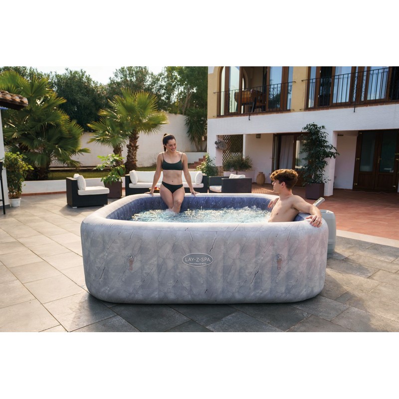 BESTWAY Lay-Z-Spa San Francisco HydroJet Pro™ 6001Q ist die moderne aufblasbare Whirlpool-Lösung für Garten oder Terrasse, die großzügigen Platz, energieeffizienten Betrieb und maximalen Komfort kombiniert. Mit 10 HydroJet™-Düsen, 180 AirJet™-Düsen, einem Wasservolumen von 1.180 Litern und Platz für bis zu 7 Erwachsene erleben Sie Wellness wie im Spa jederzeit zu Hause.