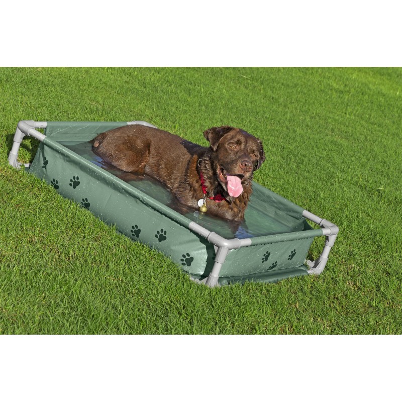 BESTWAY My First Frame Pool Pfote ist ein hochwertiger Haustierpool mit 2-in-1-Design, der Abkühlung und Komfort für Hunde, Katzen oder Kaninchen kombiniert. Mit den Maßen 102 × 74 × 20 cm und einem Fassungsvermögen von 130 Litern eignet sich der Pool ideal für Terrassen, Balkone oder kleine Gärten. Das wendbare Design ermöglicht die Nutzung als spritziger Frame Pool oder als erhöhtes, luftdurchlässiges Kuschelbett – für maximale Flexibilität und Sommerkomfort.