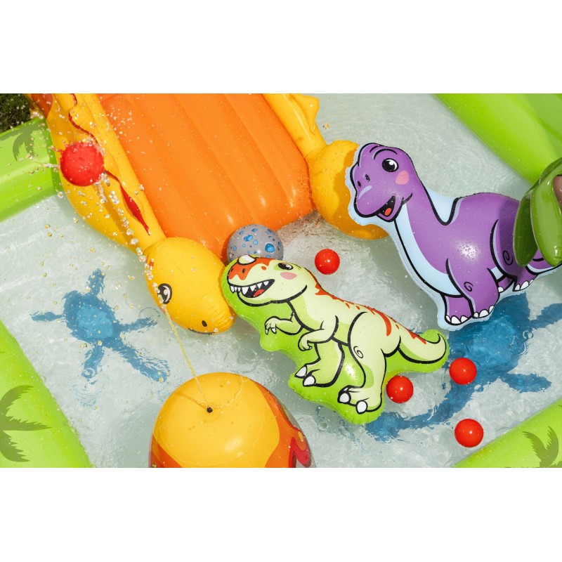 Hergestellt aus strapazierfähigem PVC, ist das Spielcenter stabil, langlebig und für Kinder ab 2 Jahren geeignet. Es bietet Platz für bis zu 3 Kinder gleichzeitig und kombiniert Planschspaß mit kreativen Wasserspielen und Dinosaurier-Themen.