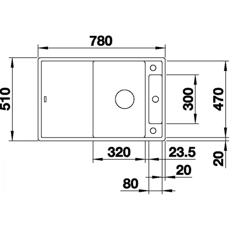 - Maße: B 780 x T 510 mm