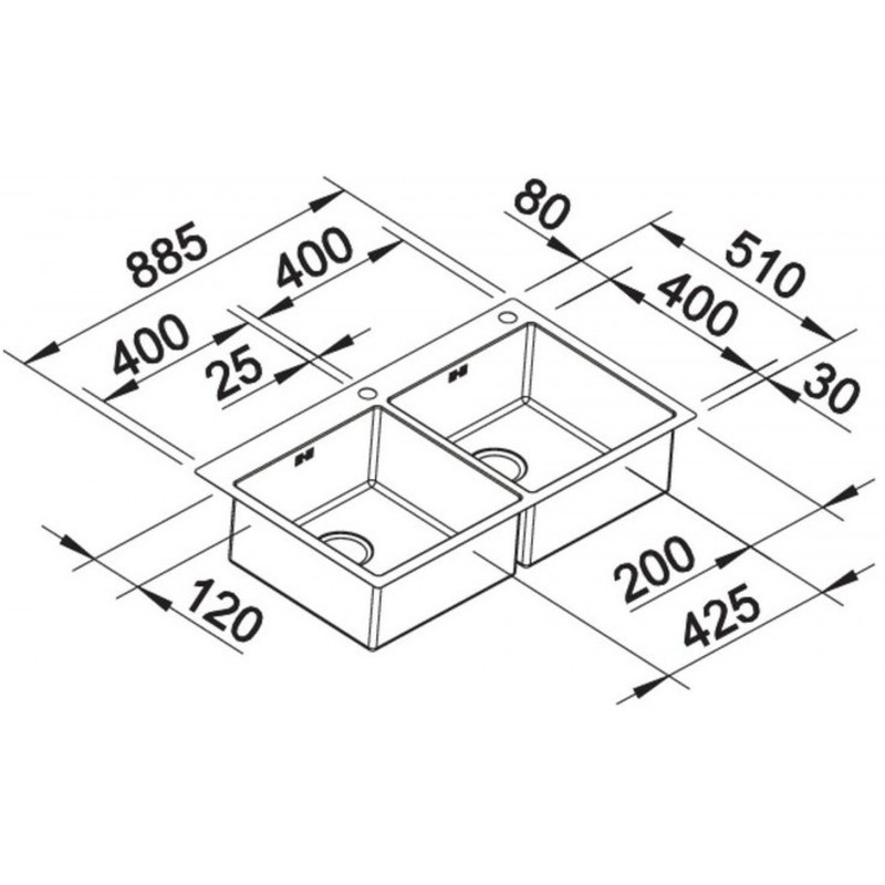 - Maße: B 885 x T 510 mm