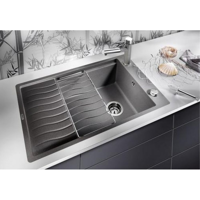 Kompakte Einbeckenspüle, auch für kleine Küchen geeignet. Praktisches und komfortables XL-BeckenInnovativ: Erweiterbare Abtropffläche durch verschiebbares Tropfgitter aus Edelstahl. Modernes, wellenförmiges Design von Spüle und Zubehör, perfekt aufeinander abgestimmt. Multifunktionales Tropfgitter aus Edelstahl im Lieferumfang enthalten. Seitliche Batteriebank, praktisch auch zum Vorfenstereinbau. Reversibel einbaubar.Lieferumfang:
