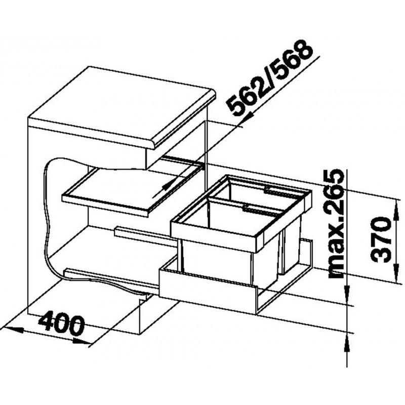 - Einbauhöhe 370 mm oberhalb Schubkastenboden, Einbautiefe 400 mm.
