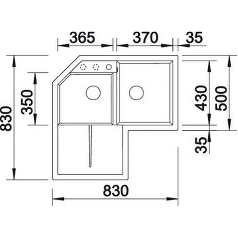 Abmessungen: 830 x 830 mmTiefe des Beckens: 190/130 mm