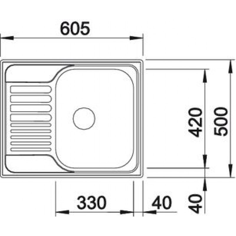 Abmessungen: 605 x 500 mmSpülbecken: 330 x 420 x 170 mm