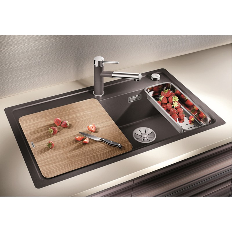 BLANCO Blancozenar 45 S Einbauspüle Becken rechts, inklusive Holzschneidbrett, Farbe anthrazitAustattung: