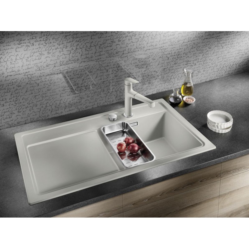 BLANCO Blancozenar 45 S Einbauspüle Becken rechts, inklusive Holzschneidbrett, Farbe perlgrauAustattung: