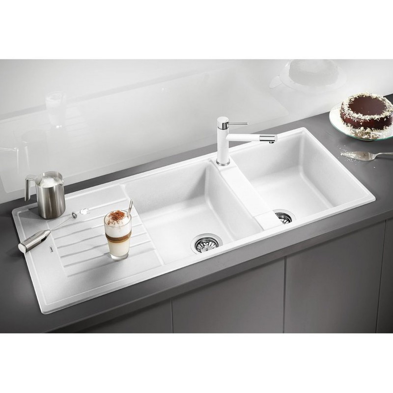 • Das geräumige Doppelwaschbecken mit Abtropffläche bietet ein hohes Maß an Komfort