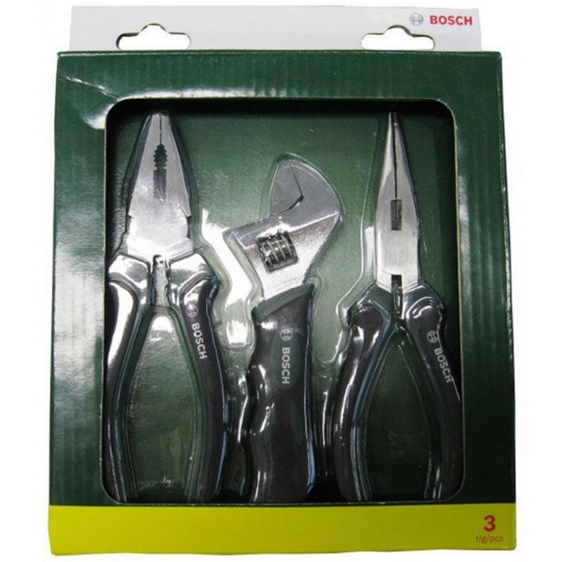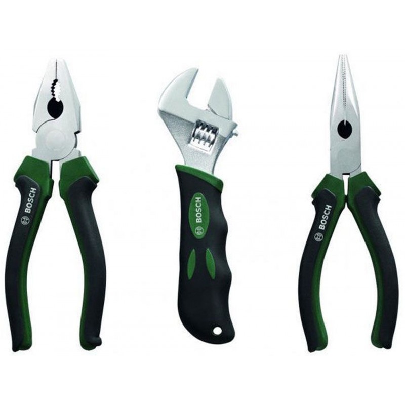 BOSCH 3tlg.Zangen Set mit Rollgabelschlüssel, Spitzzange Kombinationszange Satz 2607017345