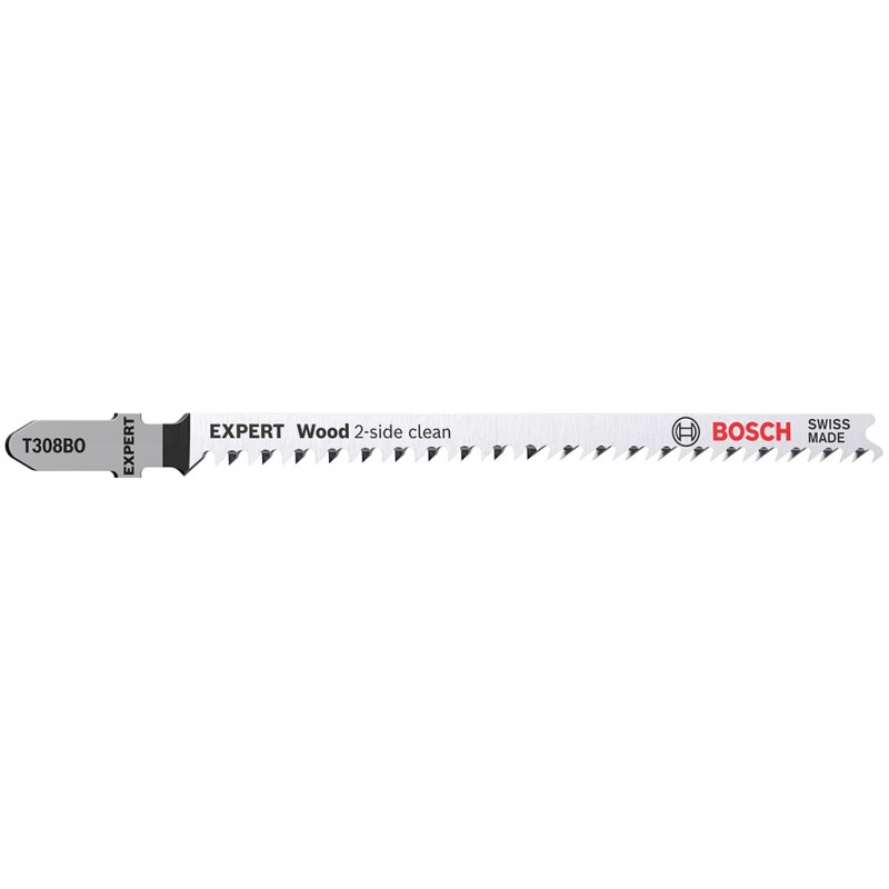 Mit seinen besonders scharfen, präzisionsgeschliffenen Zähnen eignet sich das Bosch EXPERT Wood 2-side clean-Stichsägeblatt gut zum Schneiden von Weichholz mit einer Dicke von bis zu 50 mm. Möbelschreiner können ein perfektes Ergebnis erzielen und verlieren nicht nach jedem Stichsägenschnitt Zeit durch Schleifen. Erhältlich für gerade Schnitte (T308B), für Kurvenschnitte (T308BO) und für genaue Winkelschnitte (T308BP).