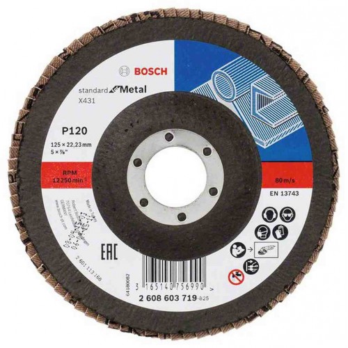 BOSCH Fächerschleifscheibe X431, Standard for Metal, 125 mm, 22,23 mm, 120 2608603719