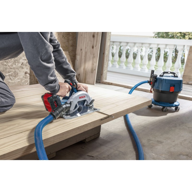 Die PRO GKS18V-68-2 verfügt über einen Paddelschalter und liefert eine Leistung, die mit der einer kabelgebundenen 1400-W-Säge vergleichbar ist. Sie ist mit einem intelligenten Bremssystem ausgestattet und wiegt nur 3,5 kg (ohne Akku und Sägeblatt). Sie verfügt außerdem über einen Absaugadapter.