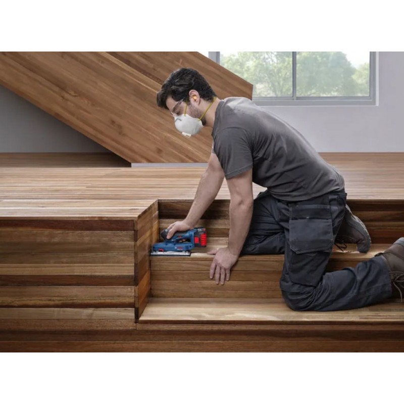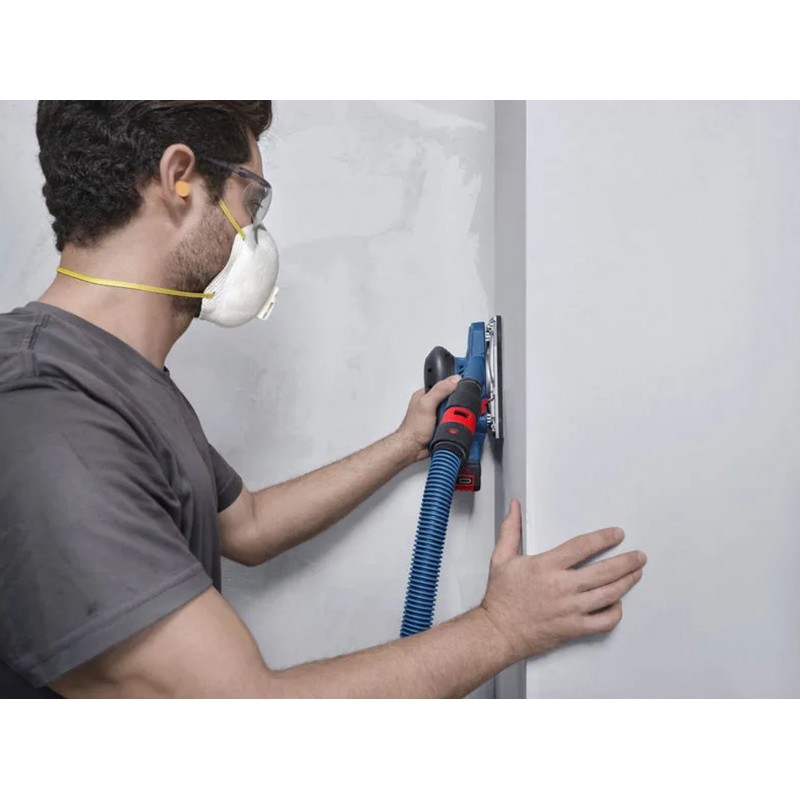 Das Akku-Werkzeug PRO GSS 18V-18 wurde für optimale Kontrolle entwickelt – dank seiner geringen Bauhöhe von bis zu 118 mm und der hervorragenden Balance. Durch die niedrigen Vibrationswerte bis zu 3,5 m/s2 kannst du länger arbeiten, ohne zu ermüden oder ein Taubheitsgefühl in der Hand zu verspüren. Der Schwingschleifer verfügt über eine effiziente Staubabsaugung mit hoher Absaugleistung von 85 % sowie eine einfache Staubentsorgung.