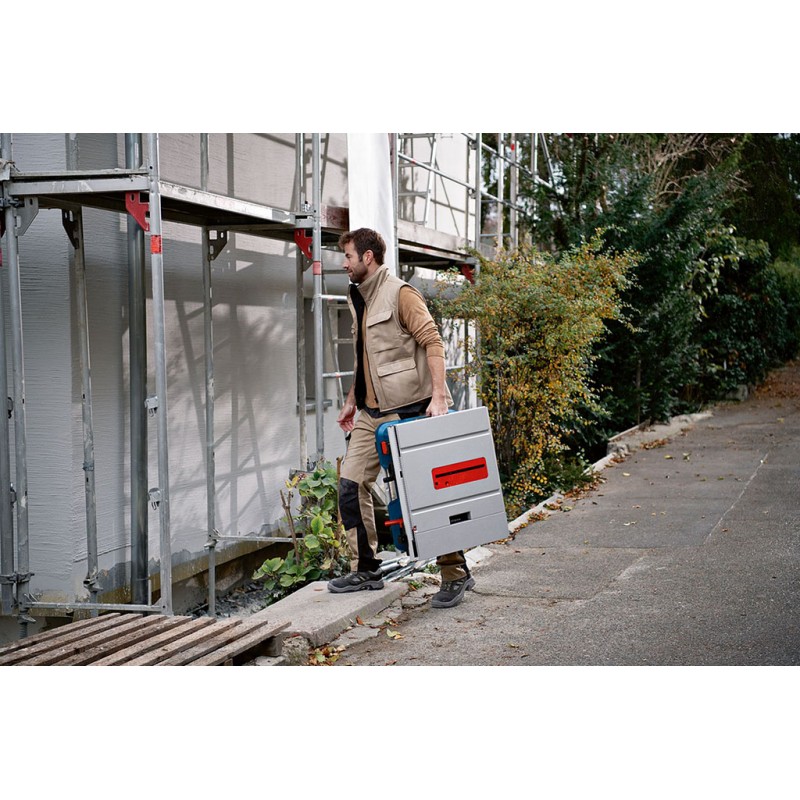 • Leichtes Design, ergonomische Handgriffe, geschützte Aufbewahrung der Anschlagschiene und Sägeblattschutzabdeckung für einen einfachen und sicheren Transport