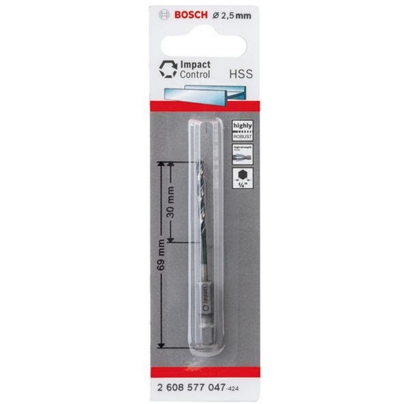 - Pro odeslání do Česka navštivte BOSCH Spirálový vrták s šestihrannou stopkou HSS 2,5 mm 2.5 x 30 x 69 mm 2608577047