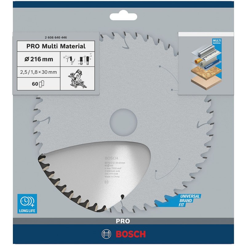 BOSCH PRO Multi Material Kreissägeblatt, 216 × 2,5 × 30 mm, T60 2608640446