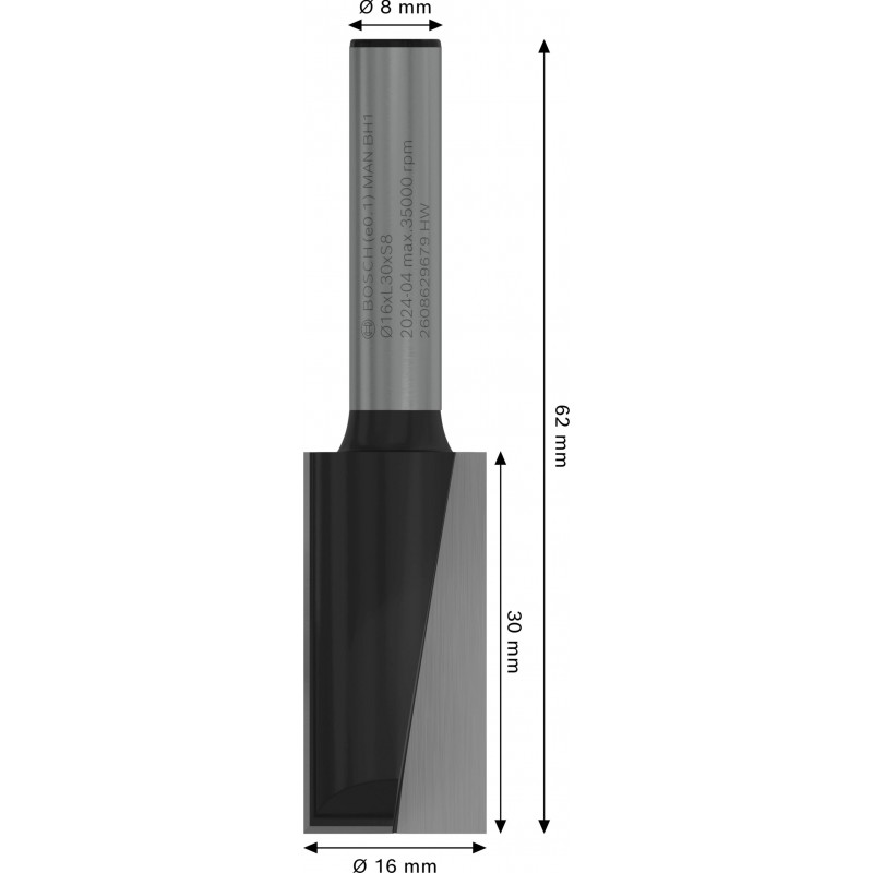BOSCH PRO Nutfräser, gerade, zweischneidig, ø 16 × L 30, Schaft 8 mm