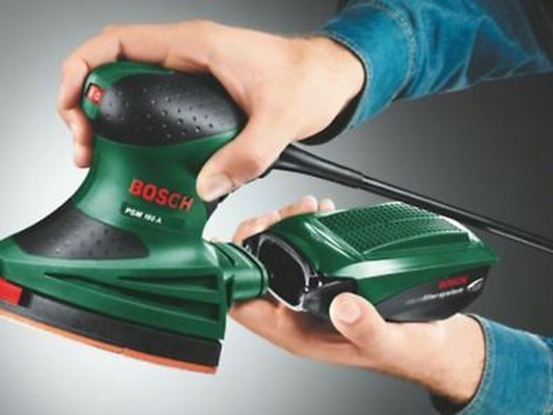 Der kompakte Bosch Multischleifer PSM 160 A ist mit einer praktischen bügeleisenförmigen Schleifplatte ausgestattet und ermöglicht so eine hohe Schleifleistung bis in die Ecken. Der Multischleifer ist auch ideal bei Projekten mit größeren Flächen oder Ecken und Kanten.
