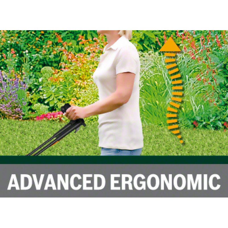 Bosch Rasenmäher Rotak 40 - Rasenschnitt in Top-Qualität bis an jede Rasenkante.Mit dem Rasenmäher Rotak 40 von Bosch machen Sie Ihren Rasen zum ästhetischen Mittelpunkt des Gartens. Denn der Rotak 40 erleichtert Ihnen die Gartenarbeit durch eine mühelose Bedienung und leichtes Lenken. Der 1700-Watt-Motor ist besonders kraftvoll, da die hohe Drehzahl des Motors in ein hohes Drehmoment am Messer verwandelt wird. Darüber hinaus verfügt der Rotak 40 über gummierte Reifen, mit denen er noch sanfter über den Rasen fährt. Zudem erspart Ihnen der große Fangkorb ein häufiges Leeren und Sie sind schneller mit Mähen fertig. Das gezackte Leaf Collect Messer zerkleinert auch Blätter und befördert diese mit dem Schnittgut optimal in den Fangkorb.