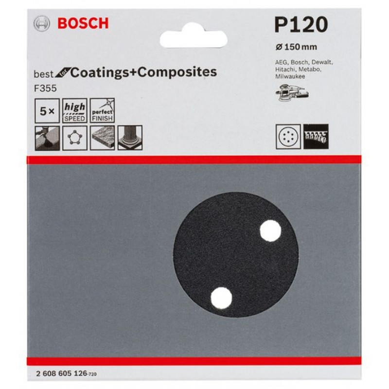 - Aby wysłać do Polski odwiedź BOSCH Papier ścierny F355, opakowanie 5 szt. 150 mm, 120 2608605126