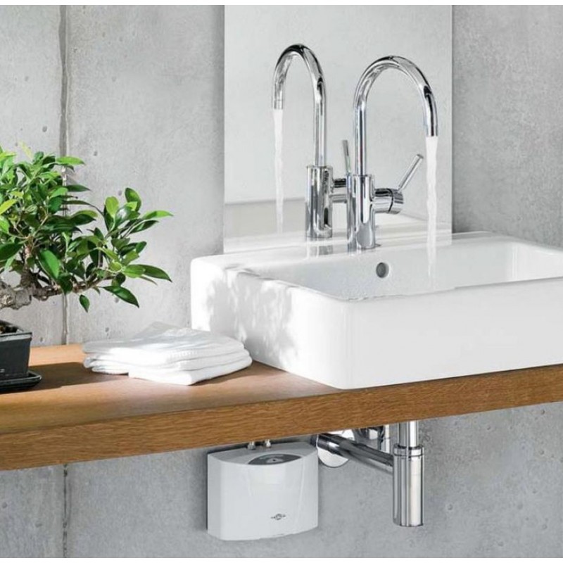 Die Erwärmung des Wassers erfolgt direkt beim Durchströmen ohne Vorratsspeicher und ohne Bereitschaftsenergieverluste. Die Heizleistung wird automatisch bei Erreichen der Einschaltwassermenge aktiviert. Durch die dezentrale Installation unter Waschbecken oder Spüle werden Leitungsverluste reduziert und der Energieverbrauch gesenkt.