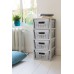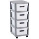 - Besteht aus Rahmen, 4 weiße Schubladen, Räder