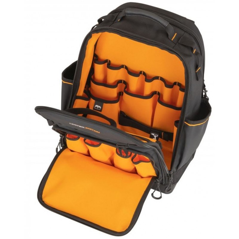 • Ausklappbares Hauptfach – Halten Sie Ihre Werkzeuge mit dem gelben Hi-Vis-Innenstoff sichtbar.