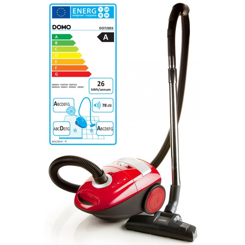 Der Domo Staubsauger DO 7283 S ist mit einem 700 Watt Hocheffizienzmotor ausgestattet. Das Fassungsvermögen des Staubsaugerbeutels beträgt 2,5 Liter. Durch den HEPA-Filter sorgt das Gerät für eine saubere Ausblasluft. Die Saugkraft können Sie nach Bedarf regulieren. Sie können das Teleskoprohr auf bis zu 90 cm asuziehen. Der Staubsauger ist mit einer effizienten Bürste ausgestattet und im Zubehör sind ein Rillensauger, ein Staubbürstchen sowie eine Parkettbürste enthalten. Die praktische Parkettbürste ist besonders für empfindliche Böden geeignet, da sie besonders schonend mit ihnen umgeht. Durch die Kabellänge von 5 Metern wird Ihnen ein Aktionsradius von 8 Metern geboten. Eine integrierte Anzeige wird Sie darauf hinweisen, wenn der Staubsaugerbeutel einmal voll ist. Der Staubsauger besitzt ein Eneergielabel der Klasse A!