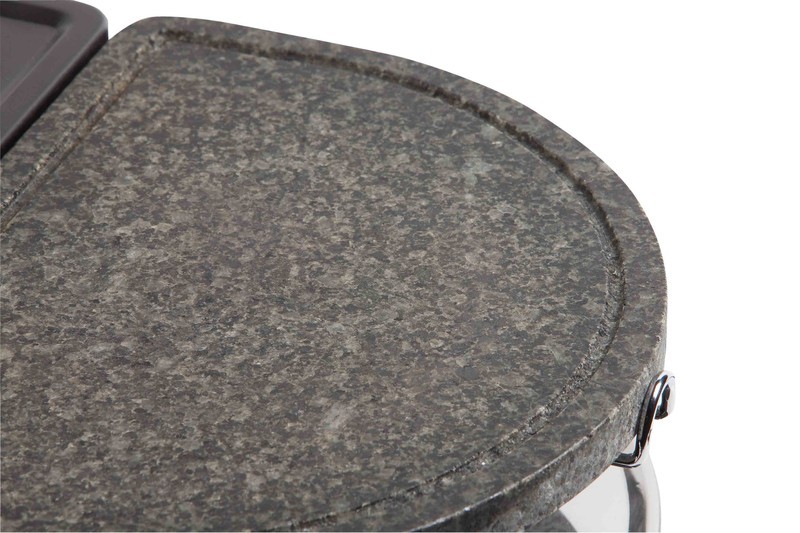 - Steinplatte mit Überlaufrand (verhindert Überlaufen von Bratflüssigkeiten)