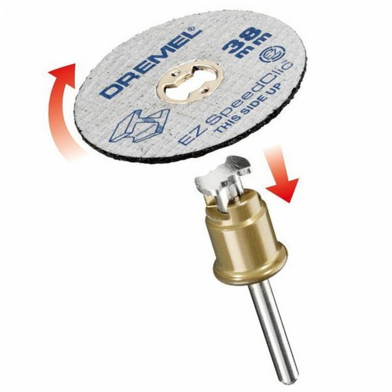 Zur Verwendung mit dem Aufspanndorn SC402. Der exklusive Easy SpeedClic (SC)-Mechanismus von Dremel sorgt für einen schnellen, leichten und schlüssellosen Scheibenwechsel: ZIEHEN – DREHEN – KLICKEN. 6 Mal schnellerer Zubehörwechsel als mit einem Standarddorn (EZ SpeedClic Aufspanndorn SC402 separat erhältlich).
