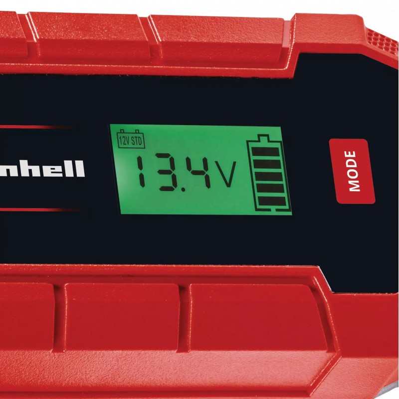 Das Einhell Batterie-Ladegerät CE-BC 4 M ist ein intelligentes Batterieladegerät, angepasst an die technisch hochentwickelten und leisstungsstarken Batterien moderner Kraftfahrzeuge. Das intelligente Batterieladegerät mit Mikroprozessorsteuerung ist für die verschiedensten Batterietypen von Fahrzeugen geeignet und verfügt über eine Reihe technischer Schutz- und Pflegemechanismen. Das Hauptaugenmerk der Entwicklung liegt auf einem schnellen, schonenden Laden der Batterien, damit eine möglichst lange Lebensdauer bei voller Leistung erzielt wird. Die Bedienung des Ladegeräts ist durch eine detaillierte Ladeanzeige unkomplizierter, als bei herkömmlichen Geräten. Der Einhell-Allrounder ist für Gel-Batterien, AGM, sowie wartungsfreie und -arme Bleisäure-Batterien geeignet. Das CE-BC 4 M passt sich automatisch an die Batteriespannung von 12 V-Fahrzeugen an. Der mehrstufige Ladezyklus des Einhell Batterie-Ladegeräts wird automatisch durch die Mikroprozessorsteuerung überwacht und angepasst. Die smarte Steuerungselektronik analysiert die Art und den Zustand der angeschlossenen Batterie und leitet bedarfsorientiert den optimalen Modus ein. Die Erhaltungsladefunktion schützt und schont die Batterie für einen dauerhaft idealen Ladezustand. Damit ist das CE-BC 4 M für alle Fahrzeugtypen geeignet, ausdrücklich auch für Saisonfahrzeuge mit langen Standzeiten: Statt die Batterie sich langsam gänzlich entleeren zu lassen und damit eine Tiefenentladung zu riskieren, wird die Batterie mittels Erhaltungsladung schonend auf ihrem optimalen Level gehalten. Die Erhaltungsladung entlastet die Batteriezellen und verlängert die Nutzungsdauer, womit einem vermeidbaren, kostenintensiven Austausch einer defekten Fahrzeugbatterie vorgebeugt wird. Autos, Motorräder oder Roller sind zu Saisonbeginn sofort einsatzbereit. Speziell für Außentemperaturen unter 5° Grad Celsius ist ein Winterlademodus entwickelt worden. Zusätzlich ist das Gerät mit einem Recondition Mode ausgestattet, welcher tiefenentladenen Batterien neues Leben einhauchen kann und einem Supply Modus zum Nutzen als Stromversorgung. Ein automatischer Überladungs-, Kurzschluss- und Verpolungsschutz schützt sowohl das Ladegerät, als auch die Batterie. Das Einhell Batterieladegerät erfüllt die IP-Schutzklasse 65, womit es staubdicht und gegen Strahlwasser geschützt ist. Die LCD-Batteriespannungs- und Ladefortschrittsanzeige zeigt auf einen Blick, auf welchem Ladezustand sich die Batterie befindet und auf welchen Modus das Ladegerät eingestellt ist. Dabei unterscheidet das Gerät in vier Ladestufen und im Anschluss von 12 Volt Batterien. Die Anzeige auf dem Einhell Batterieladegerät weist ebenfalls auf einen falschen Anschluss der Zangen hin und macht den Anwender sofort auf etwaige Probleme aufmerksam. Durch die vollisolierten Batterieklemmen lässt sich das Batterie-Ladegerät von Einhell einfach und sicher anschließen. Das Gehäuse ist mit einer Aufhängöse versehen zur Befestigung an der Wand.