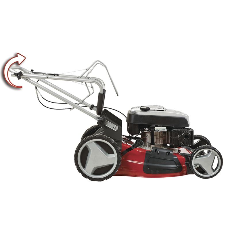 Der Benzin-Rasenmäher GC-PM 51/2 S HW ist ein robustes, sehr leistungsstarkes Gerät, das sich beim Mähen und Pflegen ausgedehnter Rasenflächen als unentbehrlicher Helfer bewährt. Sein kraftvoller Einzylinder-Viertaktmotor stellt hohes Drehmoment zur Verfügung, mit dem sich auch dichter, hoher Bewuchs zügig in den Griff bekommen lässt. Der abschaltbare Hinterradantrieb sorgt für kontinuierlichen Vorschub und erleichtert das Mähen auf großen Flächen. Dank sechsstufiger, zentraler Schnitthöhenverstellung lässt sich die Schnitthöhe besonders einfach und individuell vorwählen. Der Startseilzug des GC-PM 51/2 S HW ist gut erreichbar am ergonomischen Führungsholm angebracht, der dank dreistufiger Höhenverstellung viel Bedienkomfort bietet und sich für die platzsparende Unterbringung einklappen lässt. Als Highwheeler verfügt der Rasenmäher über extra große Hinterräder, die das Arbeiten in schwierigem Gelände erleichtern. Alle Räder bieten große Laufflächen, die den Rasen schonen. Das robuste Gehäuse besteht aus formschönem, pulverbeschichtetem Stahlblech. Mit einem Fassungsvermögen von ca. 70 Liter bietet der strapazierfähige Grasfangsack reichlich Platz für ausgedehnte Arbeitseinsätze. Dank Füllstandsanzeige lässt sich auf einen Blick erkennen, wenn eine Leerung erforderlich wird. Zusätzlich ermöglicht ein Mulchadapter das feine Zerkleinern des Mähguts, welches dann gleichmäßig auf dem Rasen verteilt wird. Dort zersetzt es sich und dient so als natürlicher Dünger. Alternativ kann auch längeres Gras mit Seitenauswurf gemäht werden. Der GC-PM 51/2 S HW wird für Rasenflächen bis 1.800 m2 empfohlen.1 Zylinder, 4-Takt-Motor