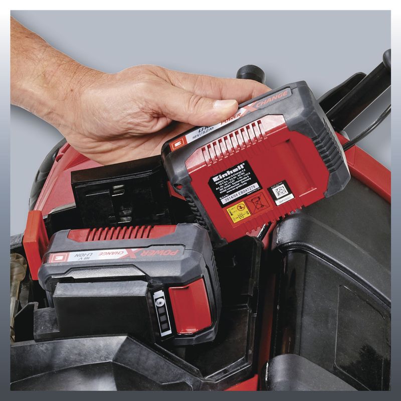 Der 36 Volt Akku-Vertikutierer GE-SC 35 Li ist ein leistungsstarkes und zuverlässiges Gartengerät, das beim Vertikutieren kleinerer bis mittlerer Bodenflächen für eine gesunde Rasenpflege gute Dienste leistet. Mit 16 hochwertigen Edelstahl-Messern entfernt die kugelgelagerte Messerwalze gründlich Unkraut und Moos samt Wurzel. Dabei liefert der kraftvolle Einhell Brushless Motor (bürstenloser Elektromotor) dank 2 Stück 18 Volt Power X-Change Systemakkus und 36 Volt Systemleistung ein starkes Drehmoment für kontinuierlichen Arbeitsfortschritt und einheitlich gute Resultate. Dank des höhenverstellbaren Führungsholms mit Schnellspannhebeln und der Arbeitstiefeneinstellung in drei Stufen, lässt sich der Vertikutierer gut auf die Anforderungen von Anwender, Boden und Bewuchs einrichten. Eine zusätzliche Parkposition schützt dabei zuverlässig die Werkzeuge und gleichzeitig den Untergrund. Die großflächigen Räder erleichtern das Arbeiten in unwegsamen Gelände und schonen dabei den Rasen. Das Gerät verfügt über ein robustes Gehäuse aus hochwertigem, schlagzähem Kunststoff. Durch den klappbarem Führungsholm lässt sich der Vertikutierer platzsparend unterbringen. Optional ist der GE-SC 35 Li zum 3-in-1 Kombi-Gerät (dazu sind zusätzlich die Zubehör Lüfterwalze (34.055.71) und der Zubehör Fangkorb (34.055.76) notwendig) erweiterbar. Dieses Gerät wird für Rasenflächen bis ca. 500 m2 empfohlen (batterieabhängig). Lieferung ohne Akku und ohne Ladegeräte.Mitglied der Power X-Change Familie, 2x18V Batterie notwendig