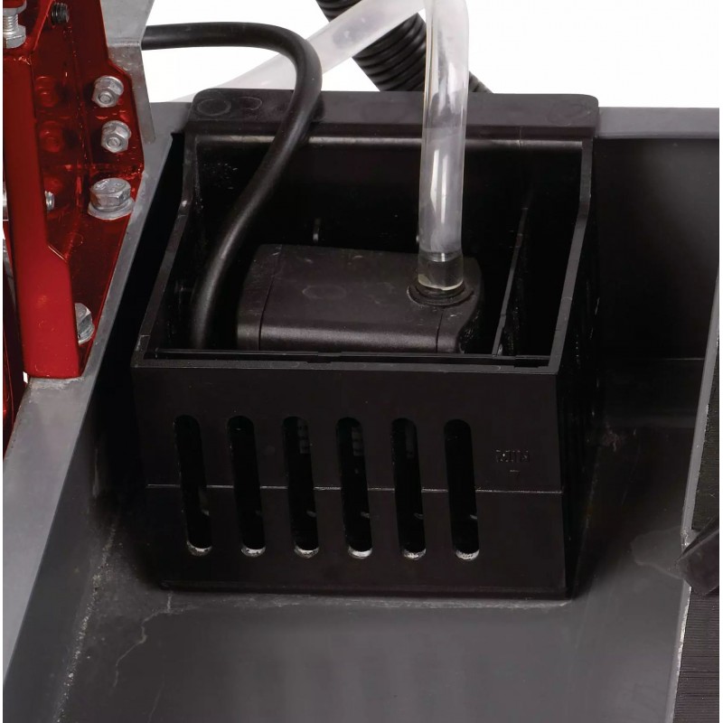 Zum staubfreien, exakten Arbeiten wird die Trennscheibe automatisch mit Wasser aus der integrierten Wanne gekühlt.